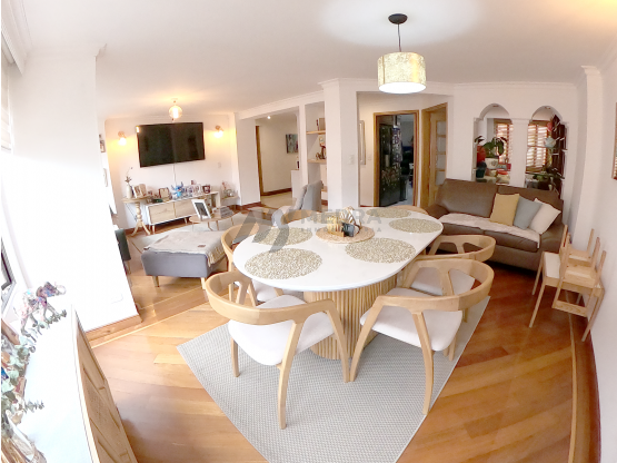 CÓDIGO 98WAS92715, Exclusivo apartamento en venta Santa Bárbara - Usaquén, cuenta con área construida de 129.49 M2, cuenta con 3 alcobas amplias y 3 baños, lo que lo hace perfecto para una familia. Además, posee 2 garajes con conexión para vehículo eléctrico y un depósito para brindar comodidad a sus propietarios. Sus características internas incluyen closets en cada habitación, dos balcones con vista panorámica, espectacular cocina integral, espacio para estudio, zona de lavandería y una espectacular sala comedor con vista exterior e ingreso de sol de la mañana. El apartamento también cuenta con una variedad de características externas que harán que te enamores de él. Su acceso por ascensor, aseguran una fácil movilidad para todos, incluidos los visitantes. Además, se encuentra cercano a centros comerciales como Unicentro, lo que lo hace aún más atractivo para aquellos que buscan una vida dinámica y llena de oportunidades. La seguridad y la tranquilidad son una prioridad en este apartamento, por lo que cuenta con circuito cerrado de TV y vigilancia constante en la portería. Este apartamento en Bogotá es una oportunidad única para vivir en una ciudad vibrante y llena de oportunidades. Con sus amplios espacios, comodidades modernas y ubicación privilegiada, no podrás resistirte a hacer de este lugar tu nuevo hogar.